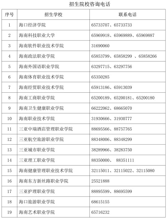 2.招生院校咨询电话