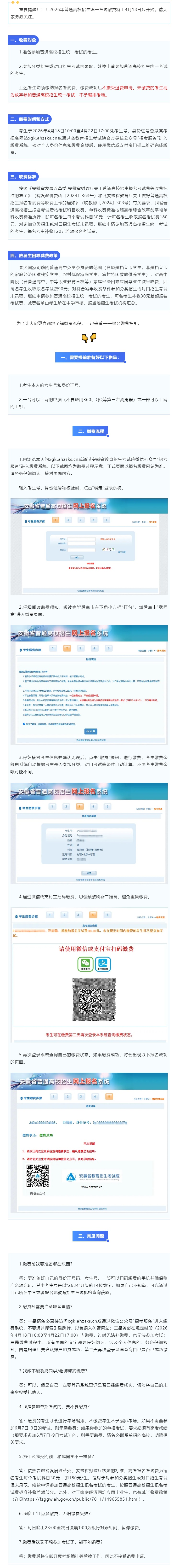 重要提醒︱安徽省2026年普通高校招生报名考试缴费办法